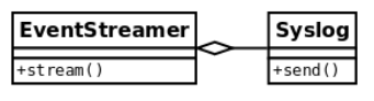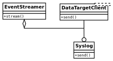 having an event streamer class that interacts with a data destination, for example, Syslog
